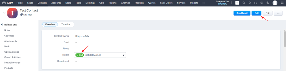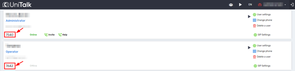 You can view them in the “Users” section of the UniTalk personal account. Additionally, you can enable the “Click to dial” feature. That is, the ability to make a call by clicking from the CRM system.