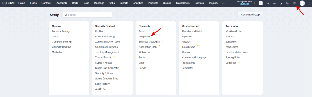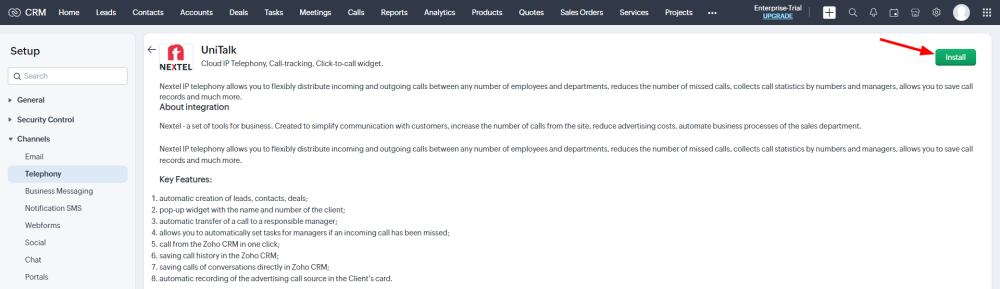 Zoho CRM integration with IP telephony