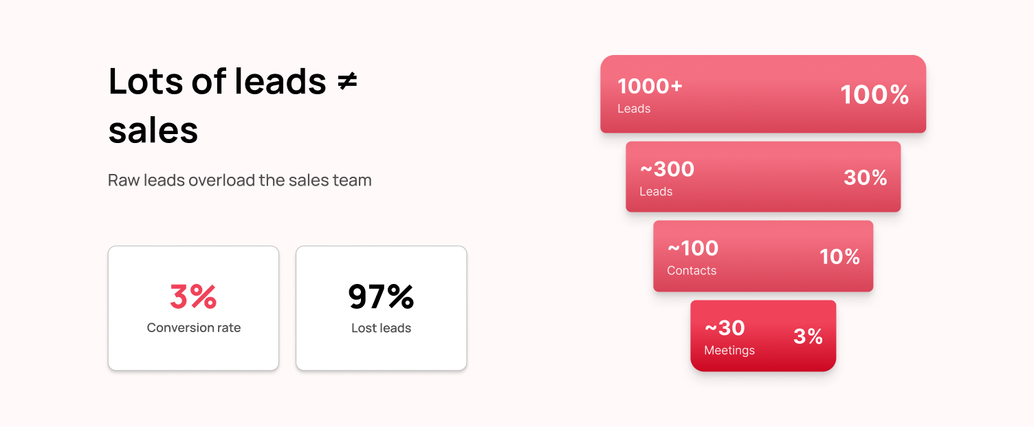 Users increasingly prefer self-serve product exploration. Content has become the first touchpoint with a company, and lead magnets, guides, and calculators have turned into a B2B marketing standard. This gives businesses more requests and a cheaper entry into the sales funnel, but simply downloading a checklist doesn’t mean readiness to buy.