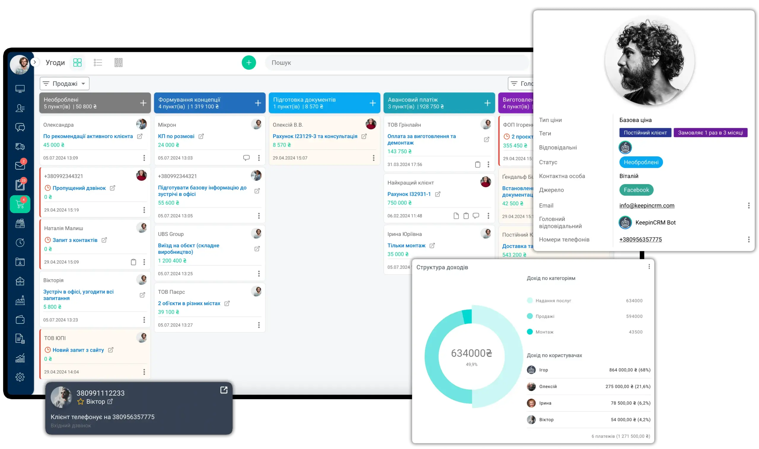 Keepin CRM — прямая противоположность Битрикс24: в украинской CRM минимум избыточного, максимум полезного. Там, где Битрикс предлагает сотни настроек и требует длительного обучения, Keepin запускается практически сразу. Плюс это бесплатный аналог Битрикс24 на одного пользователя c готовой интеграцией с UniTalk.
