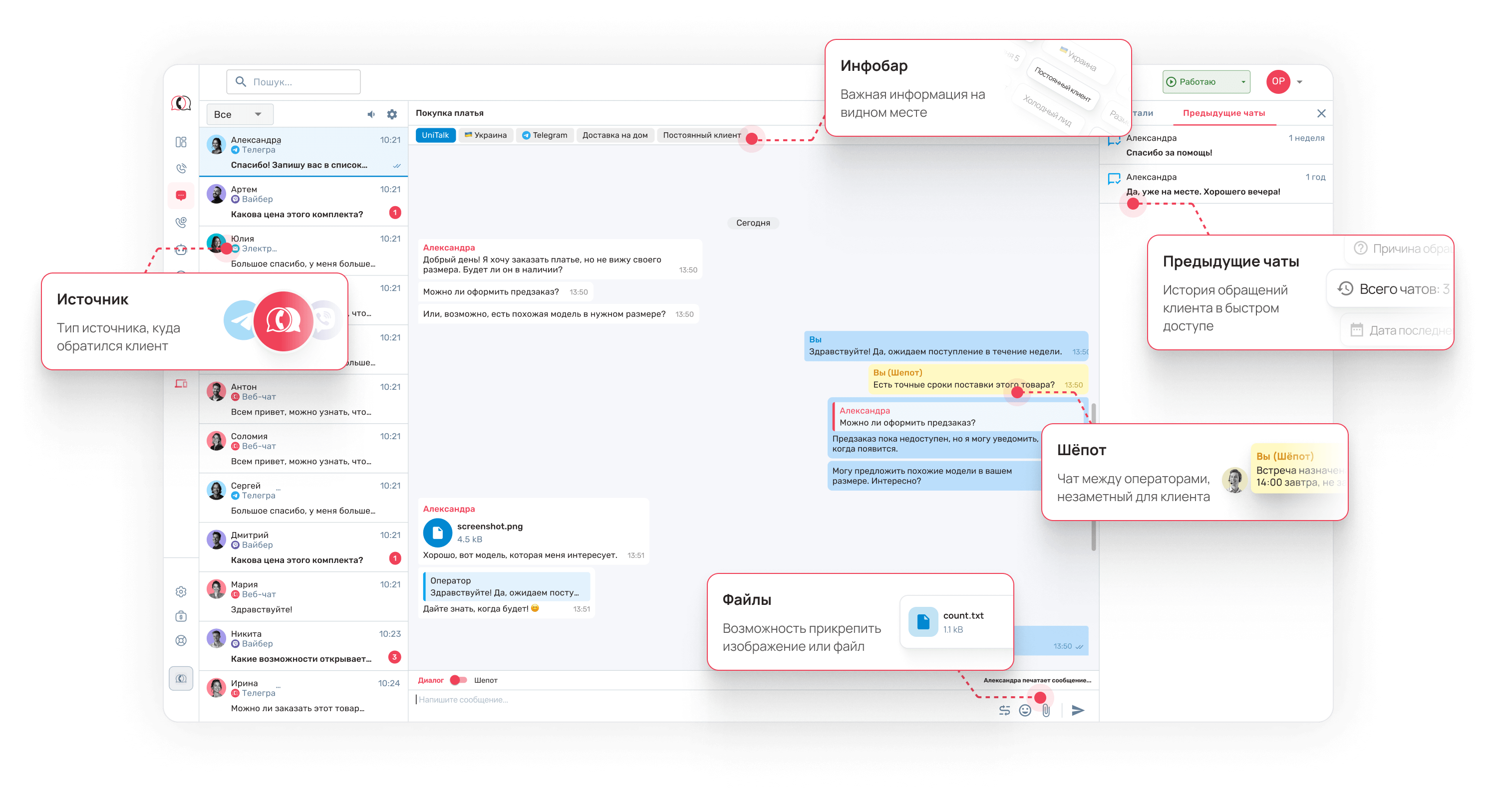 - Объедините мессенджеры. Все сообщения в одном окне помогают не терять заявки и быстрее отвечать клиентам.