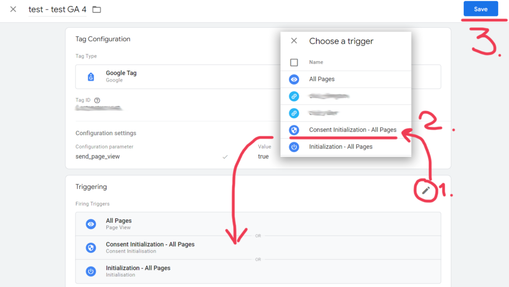 2. Убедитесь, что первым срабатывает тег конфигурации Google Analytics 4