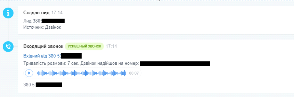 Автоматическое создание карточек лида или контакта и сделки при входящих звонках.
