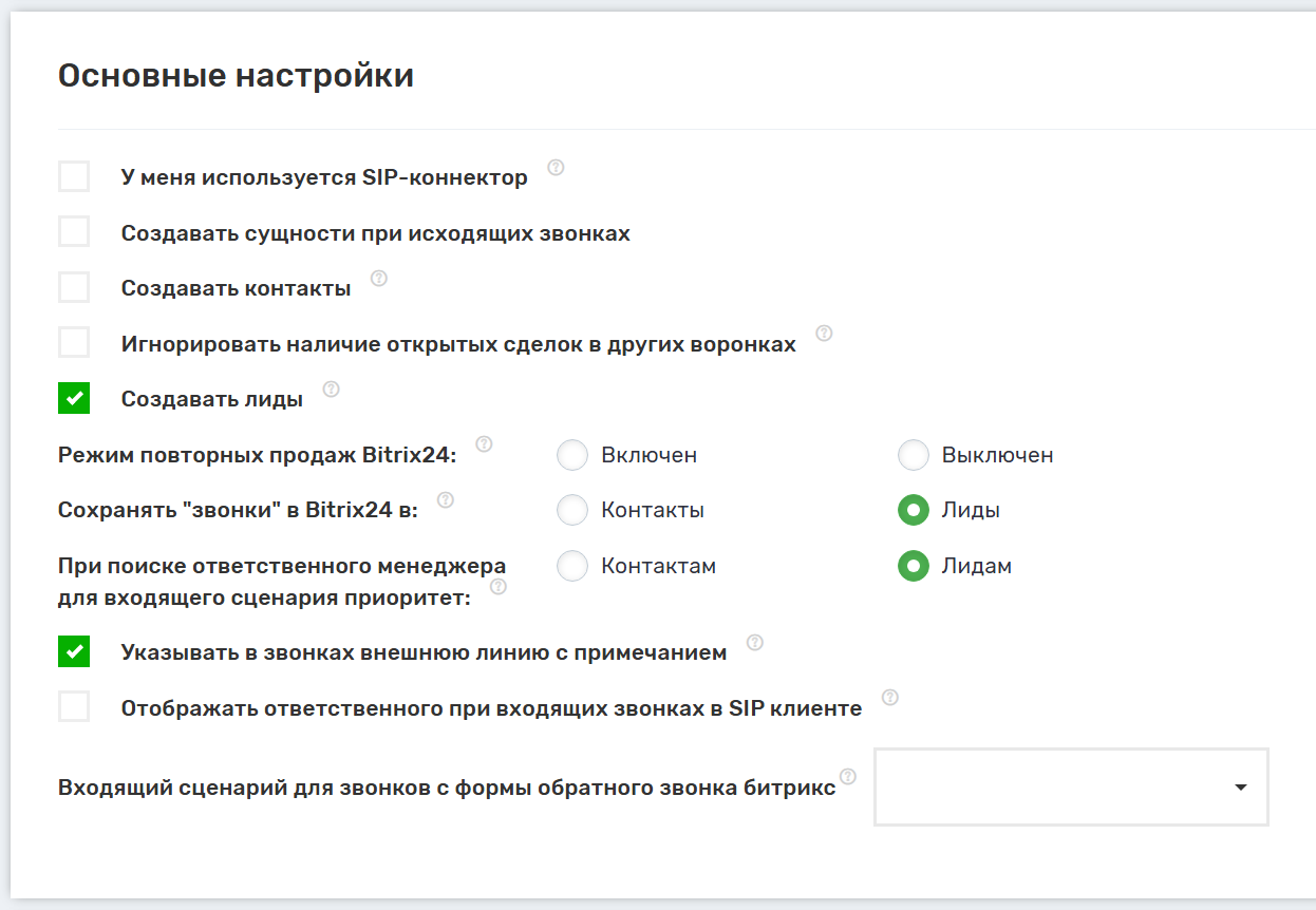 Можно установить сценарий, по которому будут совершаться звонки с форм обратного звонка Bitrix24.