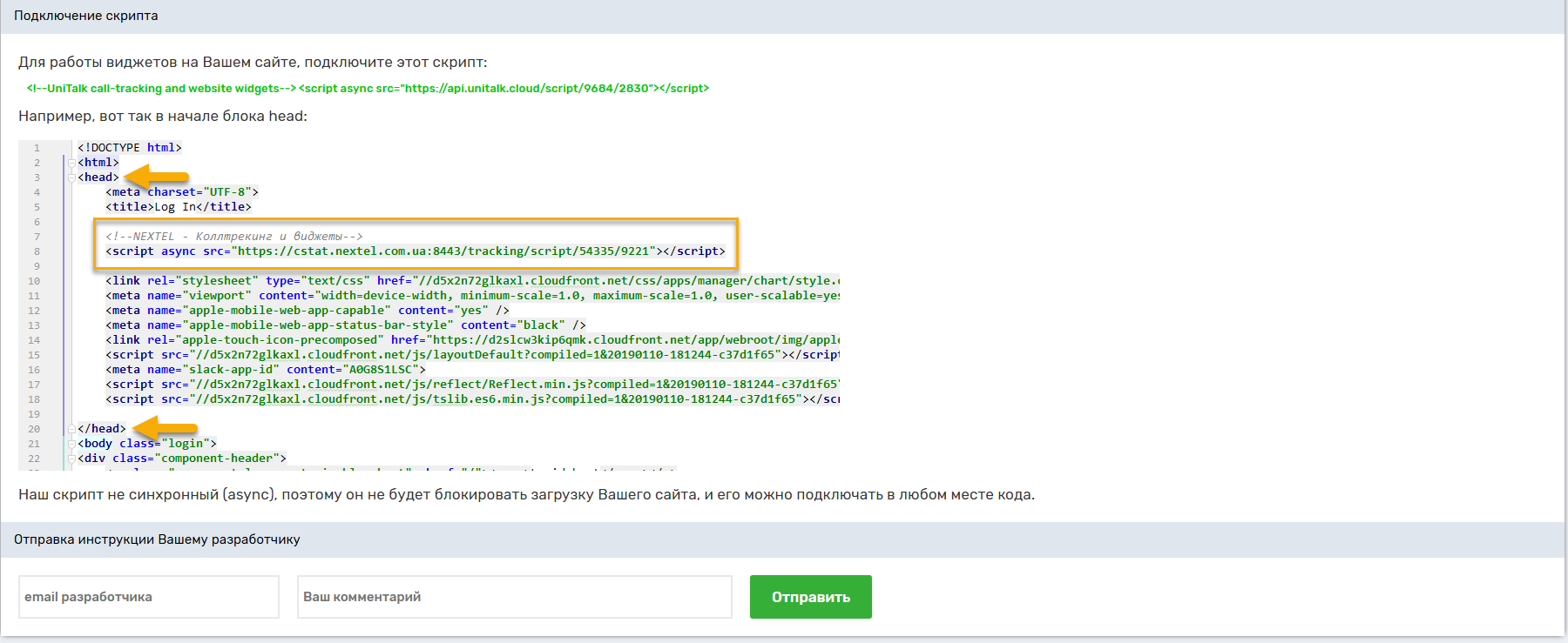 Скрипт UniTalk общий для Click to call (кнопка заказа звонка с сайта) и Call tracking.