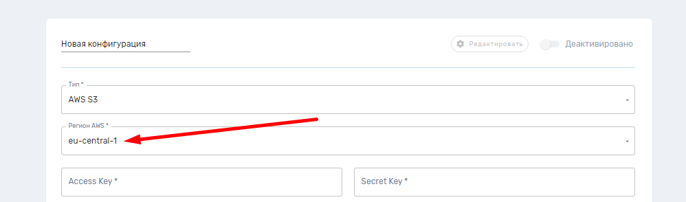 Указываем регион AWS, в котором находится нужный бакет S3.
