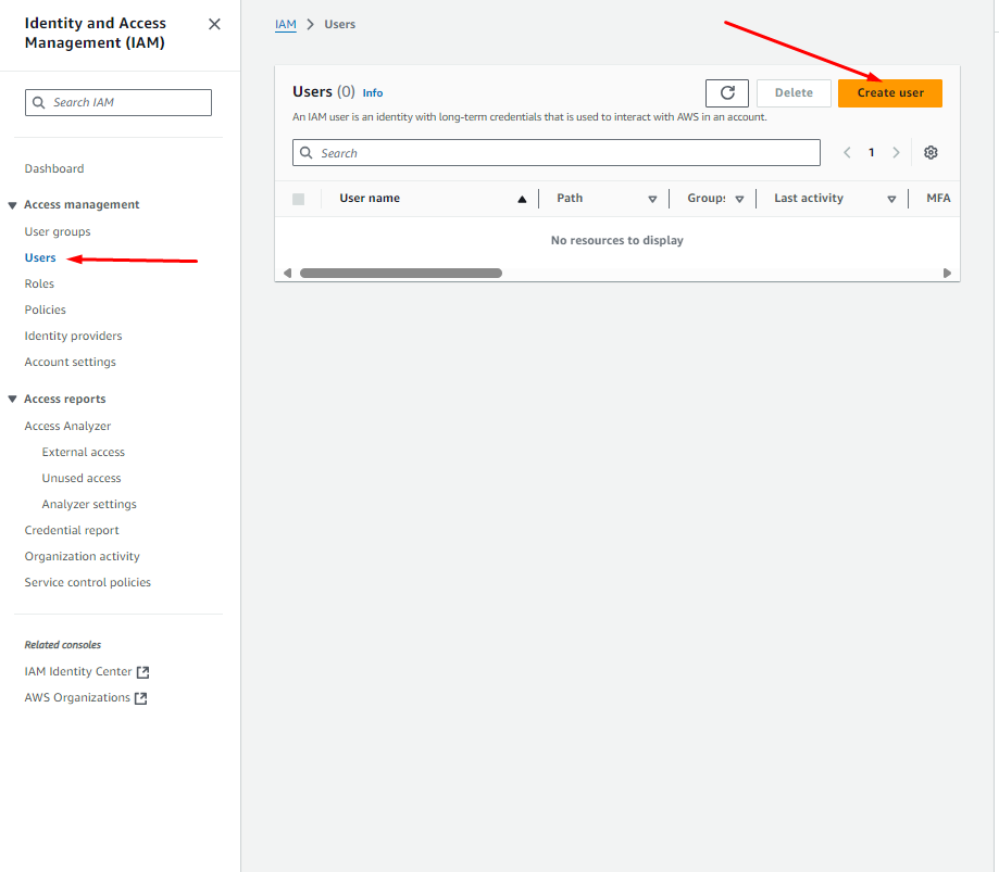 – Переходим в раздел Identity and Access Management (IAM) -> Users и создаем нового пользователя
