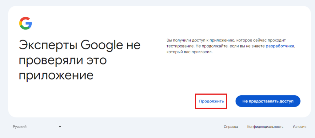Нажимаем «Продолжить»: