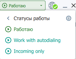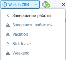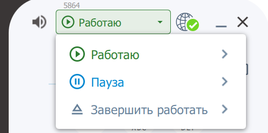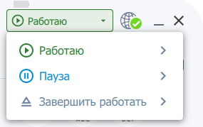 2. Кнопка управления статусом работы (Работаю / Пауза / Завершить работу)