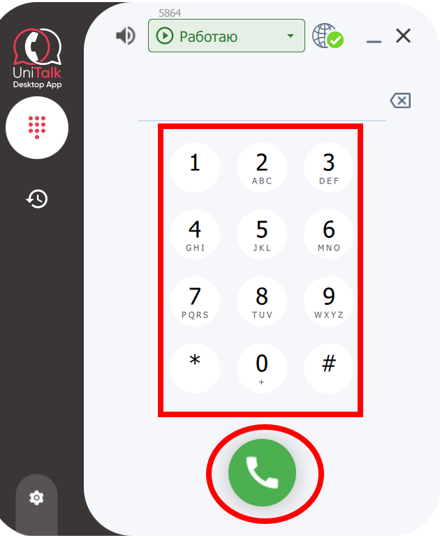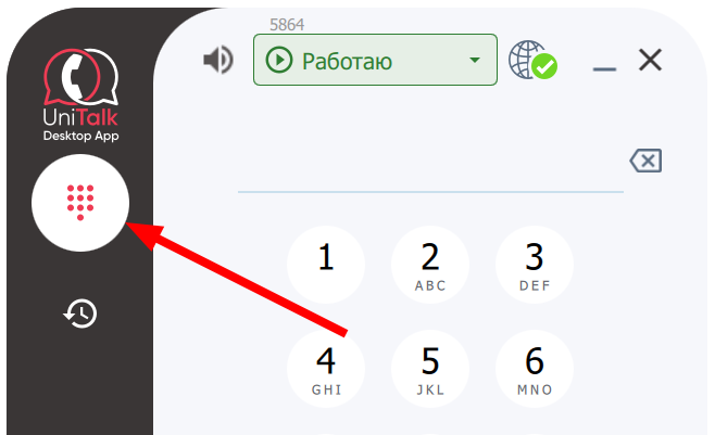 5. Цифровая клавиатура для ввода номера и кнопка вызова
