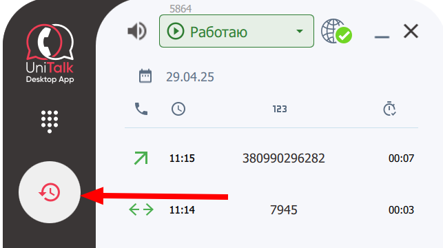 7. Кнопка перехода в раздел «История звонков«