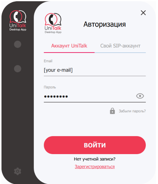 - Используя данные учётной записи UniTalk