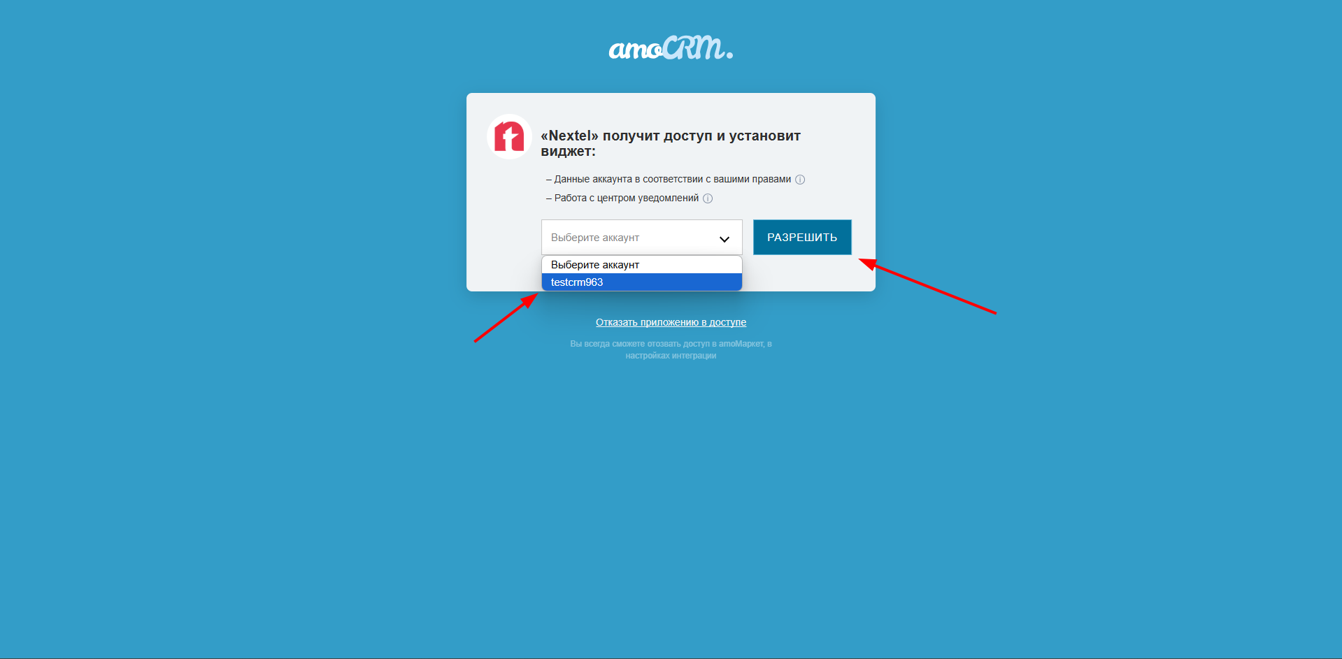 4. После подключения на странице «AmoCRM» будет такое сообщение
