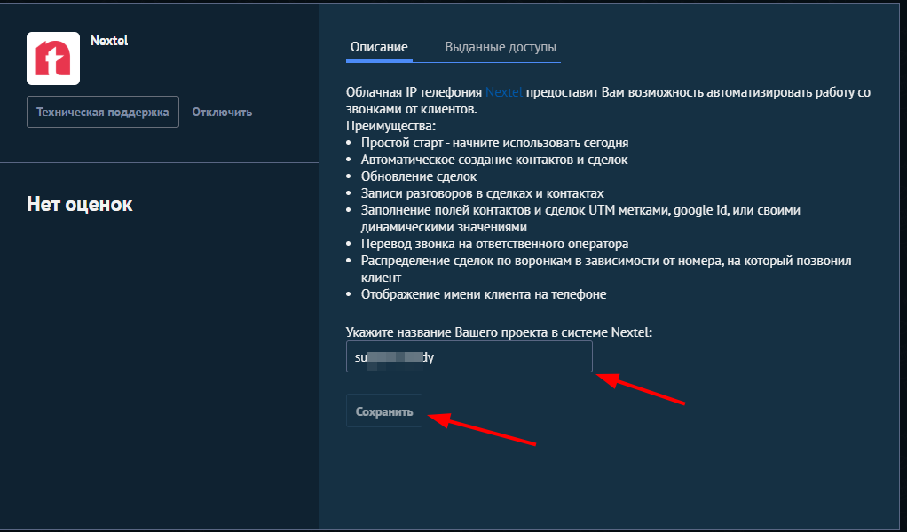 Когда интеграция отключена, вы можете редактировать ее настройки. Если настройки некорректны, включить интеграцию невозможно, пока они не будут сохранены в валидном виде.