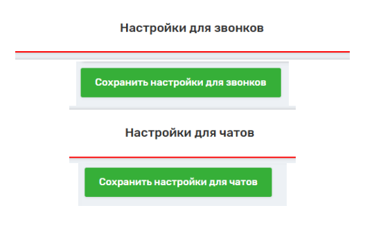 На странице интеграции AMO/KOMMO присутствуют 2 блока настроек — для звонков и для чатов. Каждый из этих блоков имеет отдельные параметры и собственную кнопку сохранения настроек*