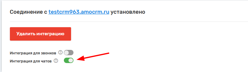 Если вам нужна интеграция только для одного из направлений (например, только для чатов), включите соответствующий переключатель и выключите другой.