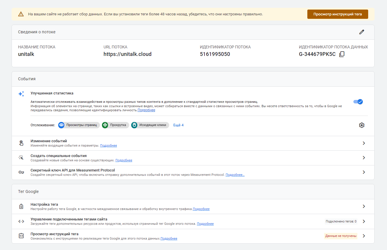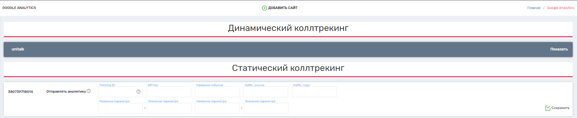 После того, как данные параметры были настроены и сохранены, можно приступать к настройке Google Analytics в личном кабинете UniTalk