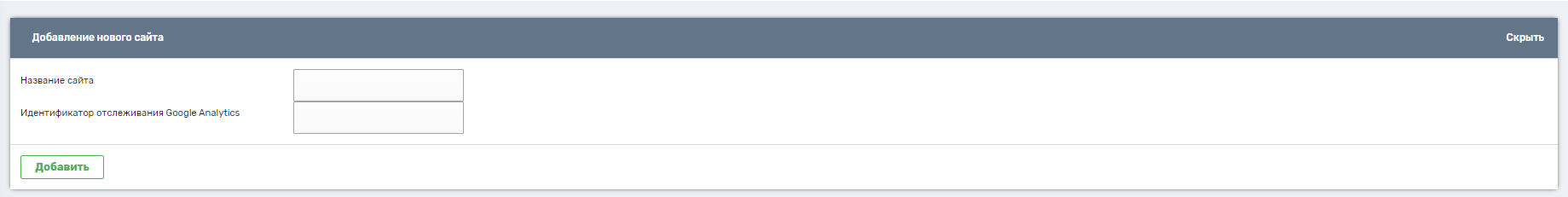 3. При варианте добавления нового сайта для отслеживания в системе UniTalk открывается меню, в котором необходимо указать название сайта (или любой его идентификатор) и идентификатор отслеживания Google Analytics, который необходимо скопировать со страницы сервиса Google Analytics.