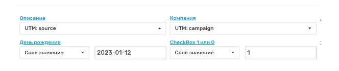 - Заполните поля контактов и сделок, которые будут заполняться данными из UniTalk при создании.