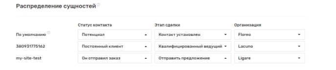4. В зависимости от внешней линии, с которой поступил звонок, выберите с какими настройками создавать сущности.