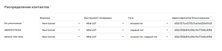 - Выберите настройки распределения контактов при создании.