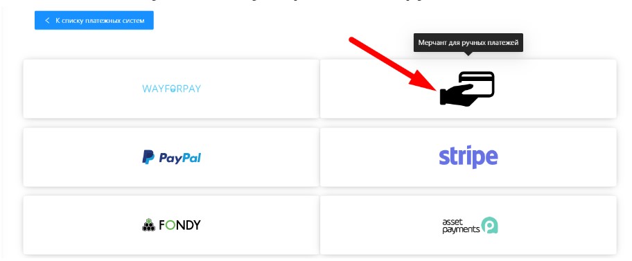 При указании идентификатора платежной системы выбирайте только платежную систему мерчанта для ручных платежей.