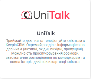 Инструкция по подключению и настройке интеграции UniTalk и KeepinCRM