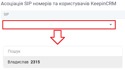 9. В блоке “Асоціація SIP номерів та користувачів KeepinCRM”: