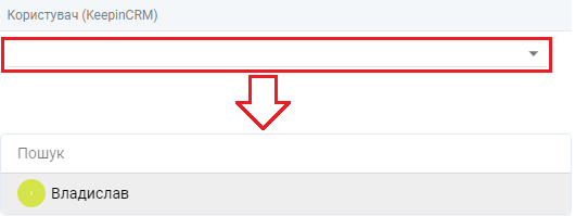 11. Из выпадающего списка выбрать пользователя KeepinCRM ;