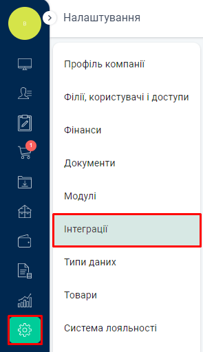 3. Перейти в личный кабинет KeepinCRM на страницу “Інтеграції” раздела “ Налаштування ”;