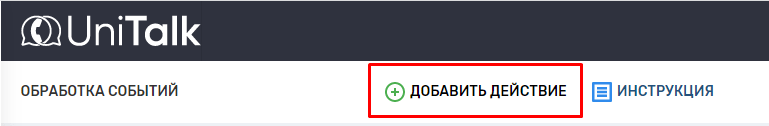 5. Перейти в личный кабинет Unitalk на страницу “Обработка событий”, в верхней части страницы нажать на кнопку “Добавить действие”;