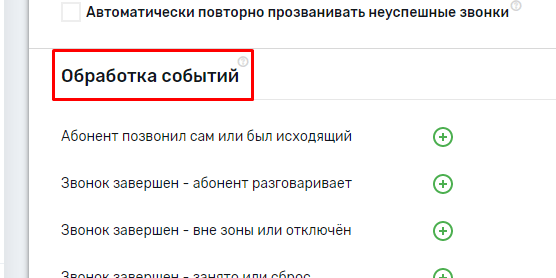 8. При создании или редактировании автообзвона/гарантированного дозвона перейти к блоку “Обработка событий” ;