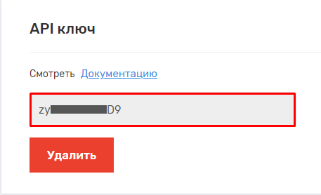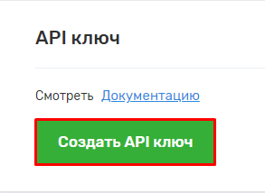 Примечание. В случае, если ключ API не был предварительно создан, в открытом разделе необходимо нажать кнопку “ Создать ” .