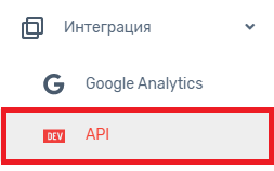 1. Перейти в личный кабинет Unitalk на страницу “API” раздела “Интеграции”;