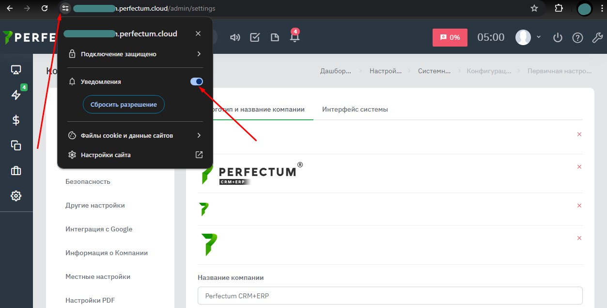 Чтобы настроить оповещение при входящем звонке, нужно настроить Push-уведомления. После настройки убедитесь, что у вас включены уведомления в браузере.