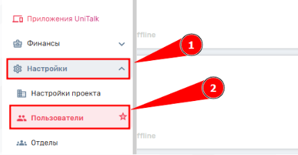 Шаг 5. Настройте внутренние номера сотрудников. Откройте боковую панель и выберите раздел «Настройки — Пользователи».