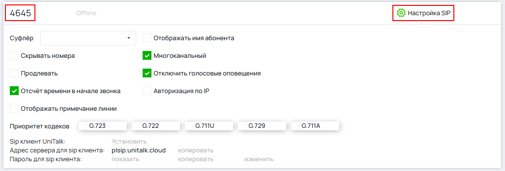 Нажмите кнопку «Настройка SIP», настройте, скопировав номер «SIP линии» и вставьте в профиль сотрудника.