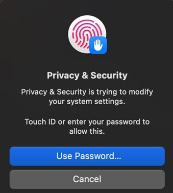 Подтвердите действие с помощью пароля или отпечатка пальца: