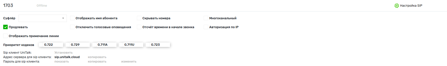 5. Развернув настройки соответствующей SIP линии вы получаете доступ к параметрам сип линии — логину, паролю и адресу сервера. Эти параметры вы должны будете внести в настройку программы для звонков.