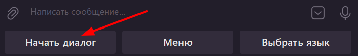Далее для инициализации нового обращения в техническую поддержку необходимо нажать на кнопку «Начать диалог»