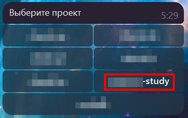 После успешной авторизации будет отображен список проектов, в которых находится пользователь, необходимо выбрать нужный в данный момент проект