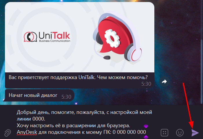 Обращение в техническую поддержку UniTalk с помощью Viber или Telegram