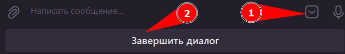 Для завершения диалога с технической поддержкой необходимо нажать на кнопку «Завершить диалог»
