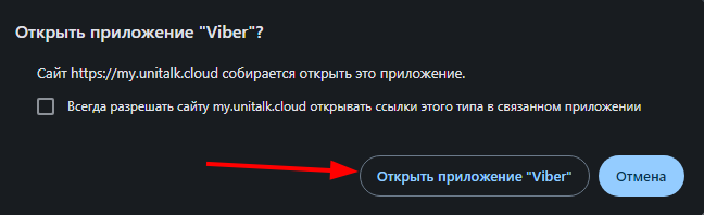 После нажатия откроется страница с предложением открыть приложение Viber, в диалоговом окне необходимо нажать на кнопку «Открыть приложение Viber»