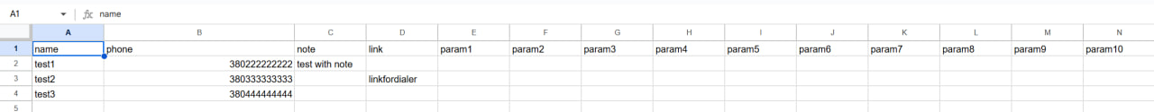 Файл для добавления в автообзвон может содержать следующие столбцы: