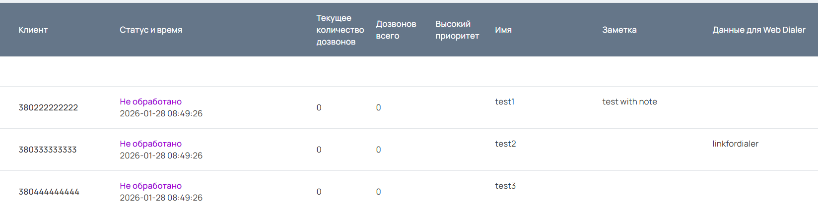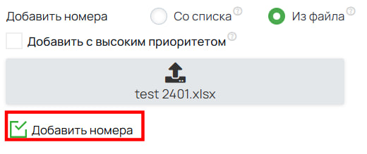 После нажатия кнопки «Добавить номера» и успешной обработки файла все корректно заполненные номера будут добавлены в автообзвон и станут доступны для использования в выбранном автообзвоне.