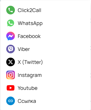 - Мессенджеры и соцсети — прямые переходы в Viber, Telegram или Instagram.