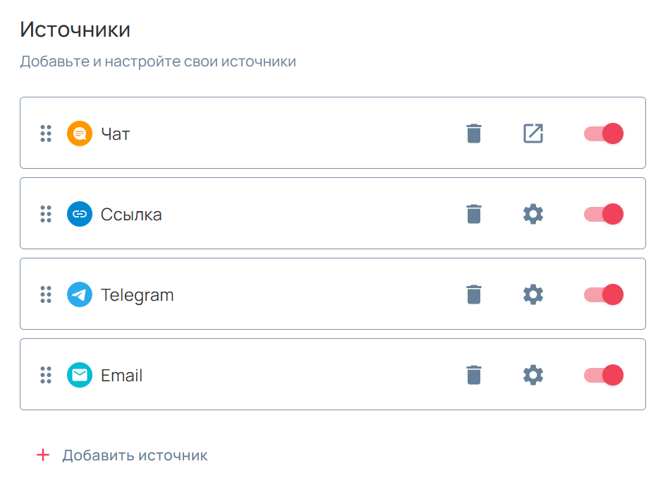 - Мультиязычие: настройте текст сообщения и призыв на кнопке для каждой языковой версии сайта в одном окне. Система позволяет выбрать сценарий после клика: открыть меню выбора источников или сразу начать чат.