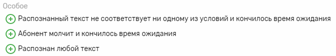 - Условие «Распознанный текст не соответствует ни одному условию и истекло время ожидания» обязательно необходимо указать один раз в дочерних узлах одного узла (чтобы знать, куда переходить, если не выполнится ни одно из указанных условий).