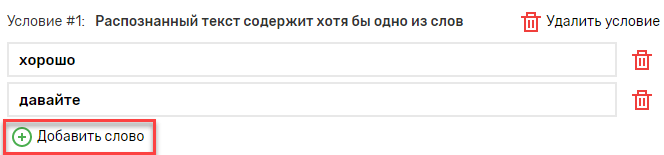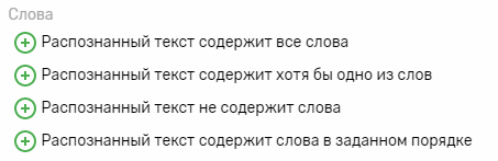 Вы можете указать, какие слова должен или не должен содержать распознанный текст. Можно указать любое количество слов (кнопка «Добавить слово»).
